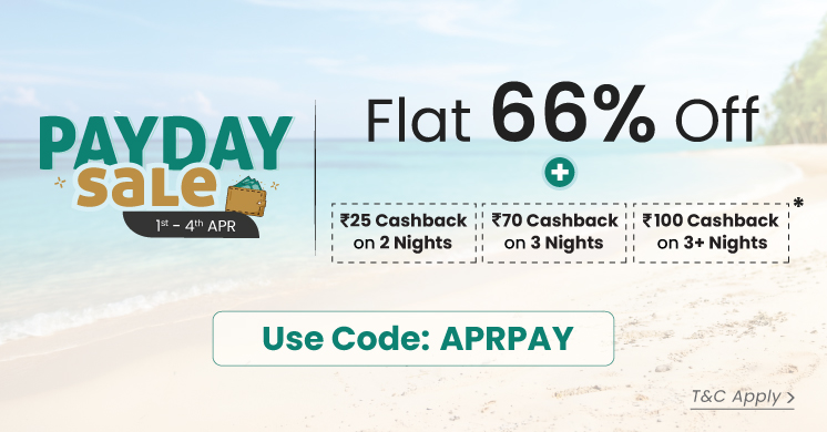 Flat 66% Off + Extra 25 Cashback on 2 Nights, 70 Cashback on 3 Nights and 100 Cashback on 3+ Nights*